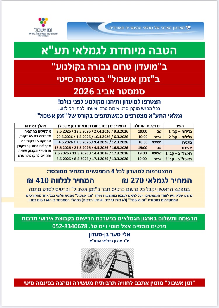 דף פרסומי – לגמלאי תעא – למועדון טרום בכורה – גלילות+נת כתיבת תגובה / מאת Rivka Profeta / 18 בפברואר 2026
