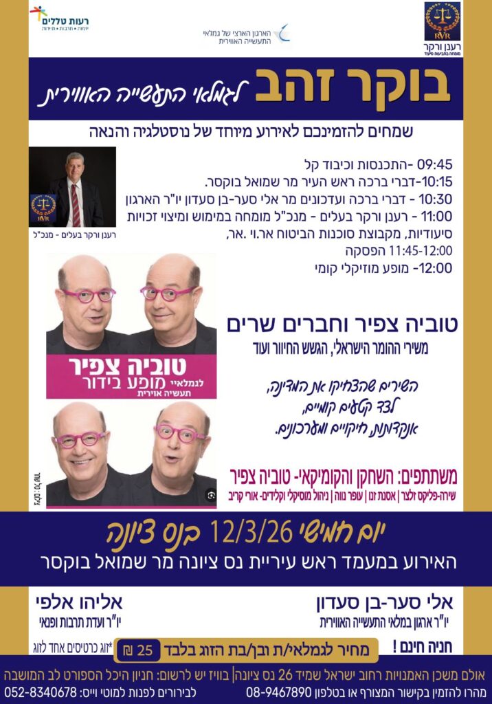 מחיר 25 ש"ח לגמלאי ונלווה.